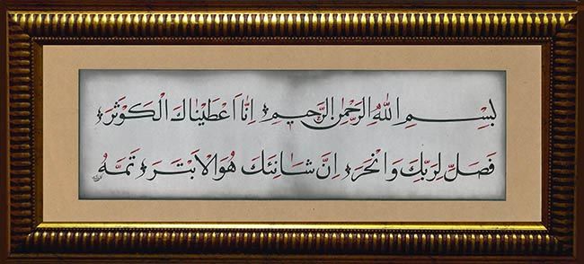 This style of Arabic calligraphy is the most popular Koranic script as it is easy to read.... simple, yet elegant. One of the most important aspects of this script is the proportions, balance and harmony between the letters and connections and combinations.