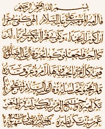 This calligraphic style has been designed for letter writing as is is a faster and briefer version of Twoqi' that later became an independent style. The word "Reqaa'" means little letters (less formal).