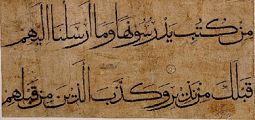 "Muhaqqaq" means fulfilled, complete, and correct; and this is the first style that is driven from the original Kufic and given an independent identity. "Muhaqqah" has long pen stokes and sharp pen-drops.