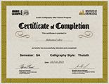 Thanks to the helpful and supportive IOK school staff and parents and especial thanks to all students for their hard work and dedication, the first semester of Arabic calligraphy classes have successfully finished. We would like to thank you all for your assistance and support and congratulate all the students who received their first semester certificate.